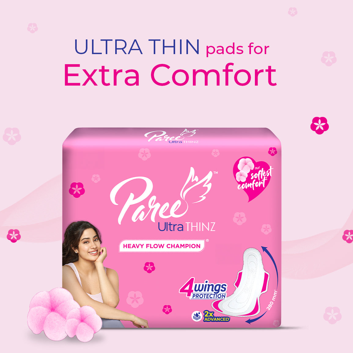 Paree Ultra Thinz XL 30 Soft Pads | 2X Advanced Absorption | Soft & Rash-Free Comfort | 4 Wings for Extra Coverage | Heavy Flow Champion Sanitary Pads for Women | Disposable Wrapper