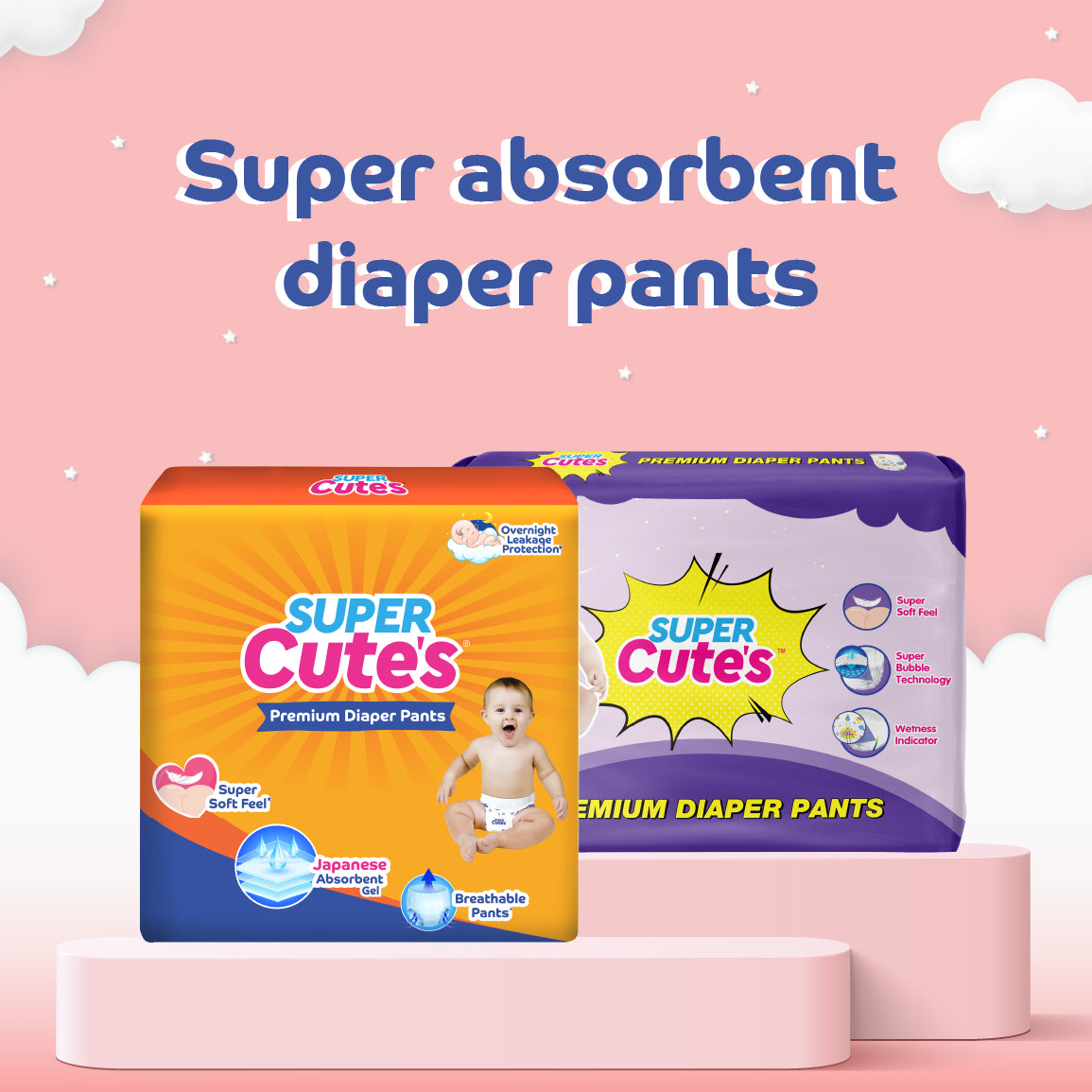Super Cutes brings you premium-quality baby diapers designed to keep your little ones comfortable, dry, and active all day long. With quick absorption, soft materials, and a perfect fit, our diapers provide the ultimate care for your baby’s sensitive skin. Super Cutes is here to make parenting easier, one diaper at a time!